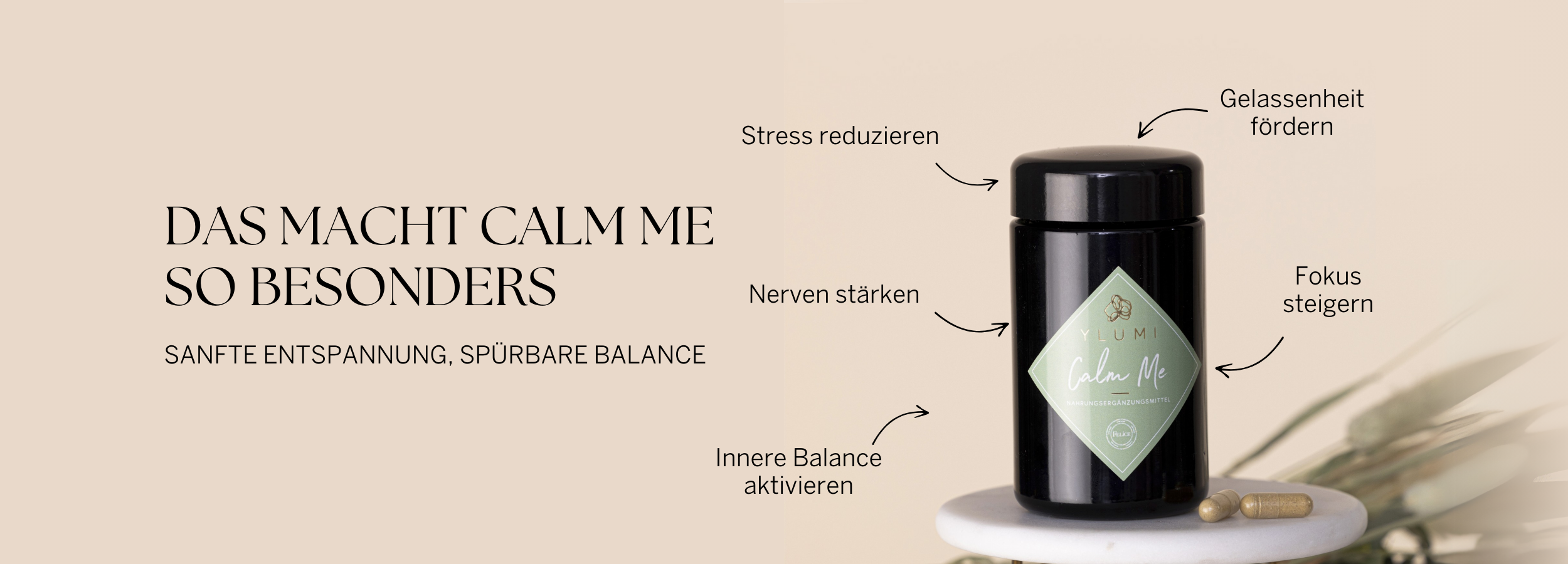 Die CALM ME KAPSELN wurden entwickelt, um Dich sanft im Alltag zu begleiten – für mehr Gelassenheit, innere Balance und Wohlbefinden. Mit Inhaltsstoffen wie Ashwagandha, Lavendel, Rosenwurz, Tulsi und Hericium sowie wertvollen B-Vitaminen und Magnesium unterstützt CALM ME Dein Nervensystem, reduziert Stressgefühle und hilft Dir, wieder bei Dir anzukommen – Tag für Tag.